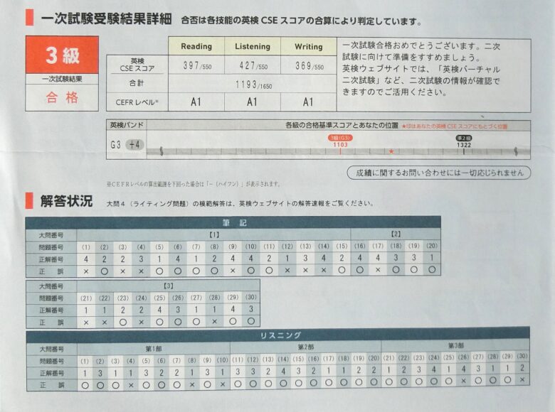 我が家のここさんが受験したのは2023年なのでライティングは1問しかありませんでしたが、3級合格を目指しての我が家のアプローチについては二次試験対策も含めて後述します。