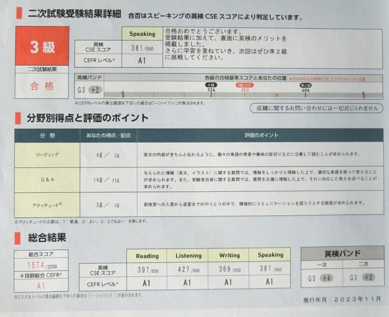 はい、英検3級も無事一発合格を成し遂げましたっ!